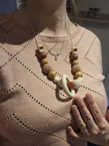 Pense aussi à varier les formes, les tailles et les textures. Bébé adorera découvrir de nouvelles sensations simplement en chipotant ton collier. C’est une petite exploration sensorielle en soi, et c’est l’un des grands intérêts du collier d’allaitement.